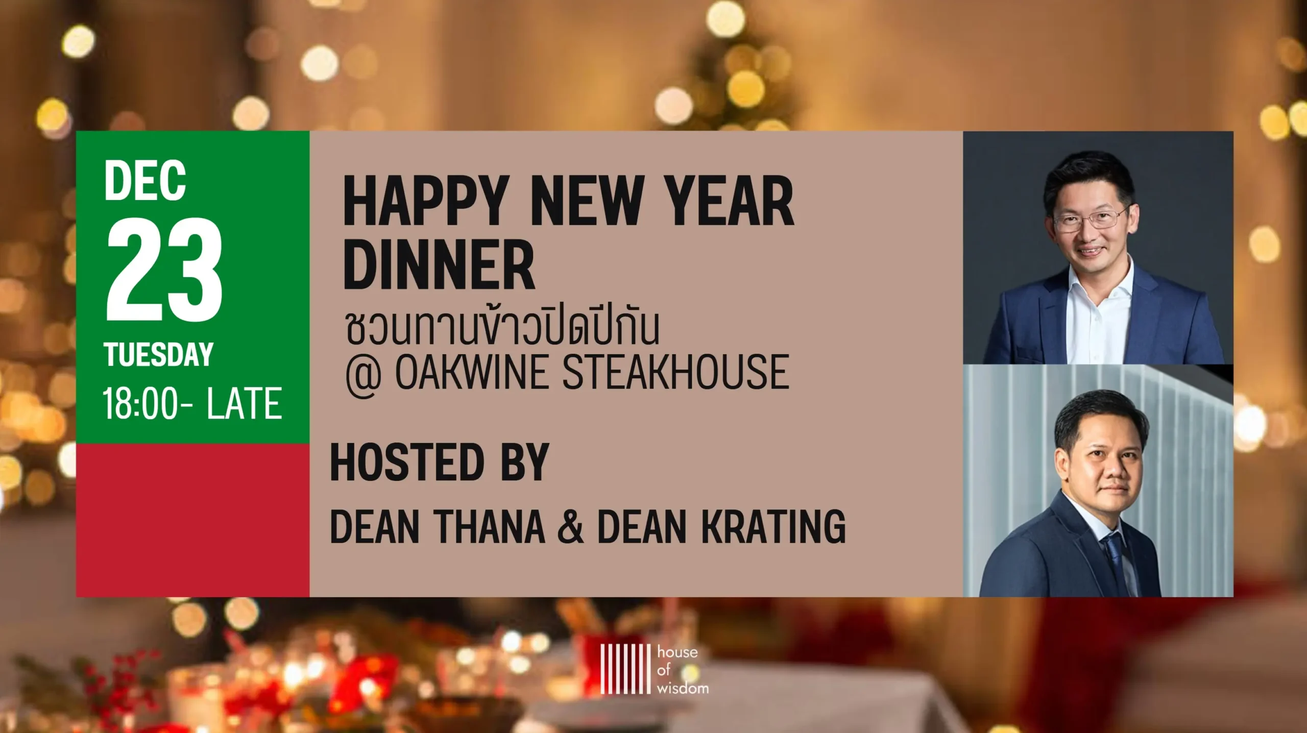 พี่โจ้เเละพี่กระทิงอยากชวนทุกคนมาร่วมทานอาหารเย็นอันเเสนอบอุ่นกันในวันที่ 23 ธค นี้ ร้าน